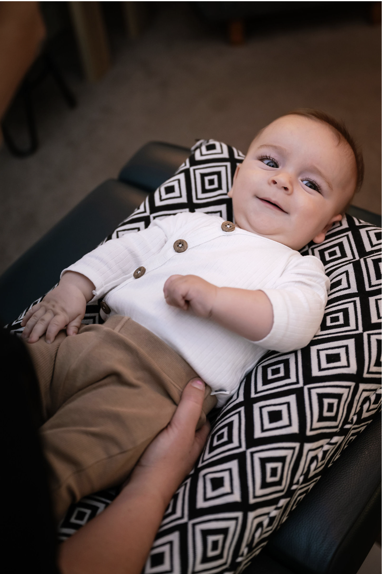 All techniques used with newborns and infants are specifically adapted and extraordinarily gentle and nothing like the adjustments used for adults. The amount of pressure used is often compared to the weight of a fingertip. Our practitioners have training in paediatric chiropractic care and will always walk you through exactly what they're observing, what it means, and what they recommend. We know handing over your newborn takes real trust.